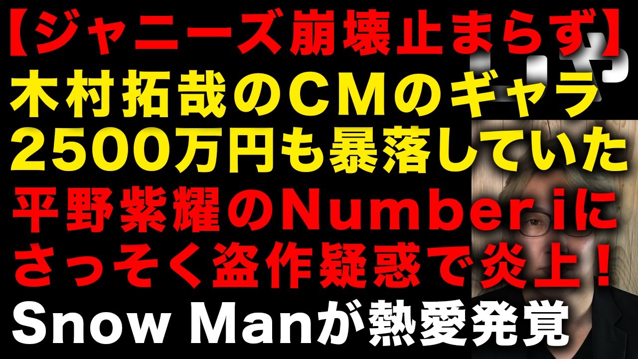 【ジャニーズ問題】でついに被害補償額が判明 木村拓哉のギャラが2500万円も暴落している 平野紫耀のNumber iの盗作疑惑 Snow Man佐久間くん熱愛発覚か (TTMつよし
