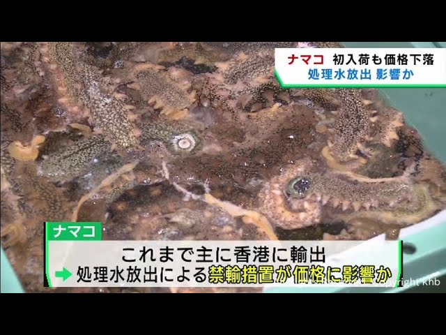 原発処理水宮城県石巻市でナマコ漁が解禁され、石巻市の魚市場に今シーズン初めて入荷しました。処理水の海洋放出の影響で、価格が前年の半値ほどに落ち込んでいます。