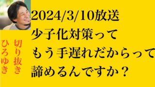 少子化対策 hiroyukiひろゆき切り抜き2024/3/10放送少子化対策ってもう手遅れだからって諦めるんですか? #ひろゆき #切り抜き #ひろゆき切り抜き #論破 2024.03.22 少子化対策