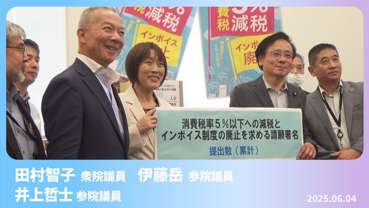 消費税減税・インボイス廃止を 署名24万人分 国会提出 2025.6.5