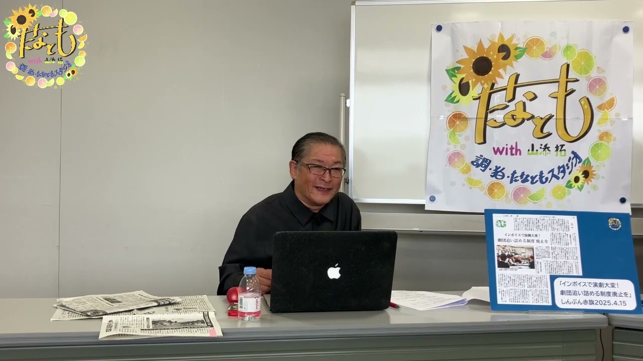 俳優・劇作家で、インボイス制度に演劇人の立場で反対の声を上げ続けてこられた狛江在住の丸尾聡さんに、インボイスのいまについて伺います。全2回。