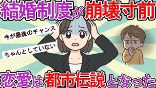 もう誰も結婚しない。崩壊寸前の日本の結婚制度。生涯未婚率30%超え。若者が恋愛を捨てた理由がヤバすぎる。少子化、就職氷河期世代、2025年問題について、真相、政策、現状の問題、解決策を紹介します。最後までゆっくりご覧になってくださいね。チャ...