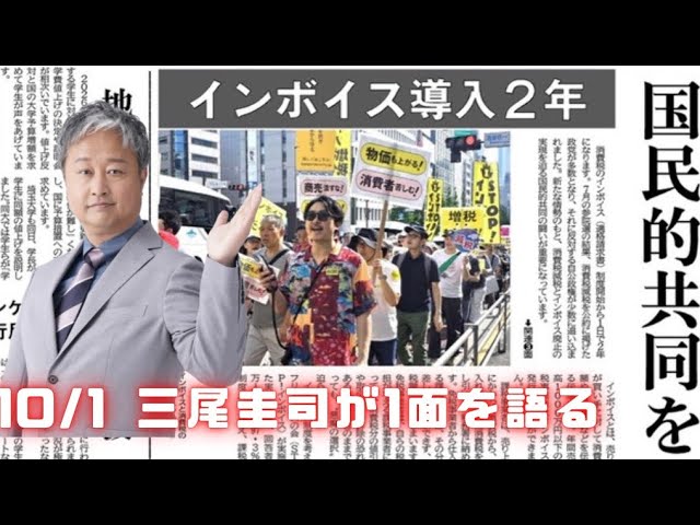10/1(水)の一面語りは、インボイス制度導入から2年経ち、事の本質が見えて来たというニュースです!消費税もインボイス制度も廃止一択ですからねー🔥