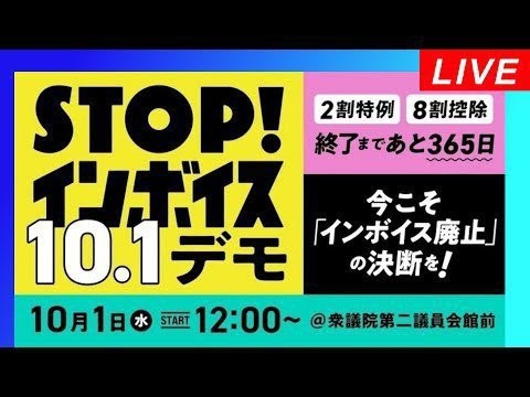 【雨でもやります】10.1STOPインボイスデモ、このあと12時から!