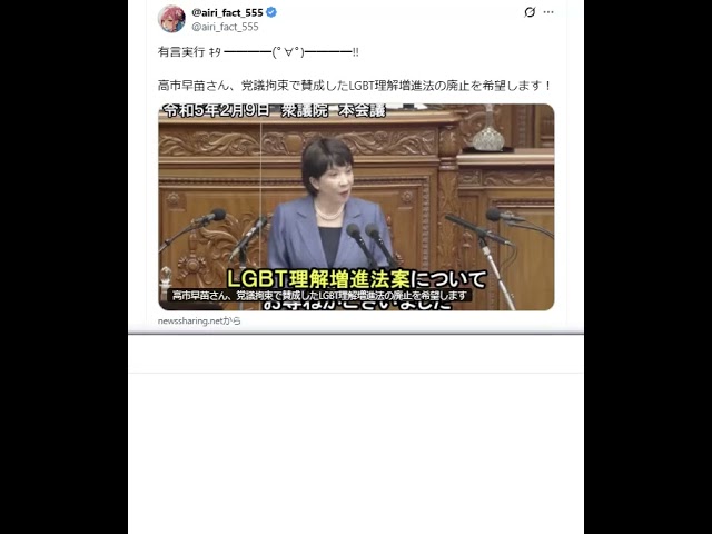 高市早苗さん、党議拘束で賛成したLGBT理解増進法の廃止を希望します!