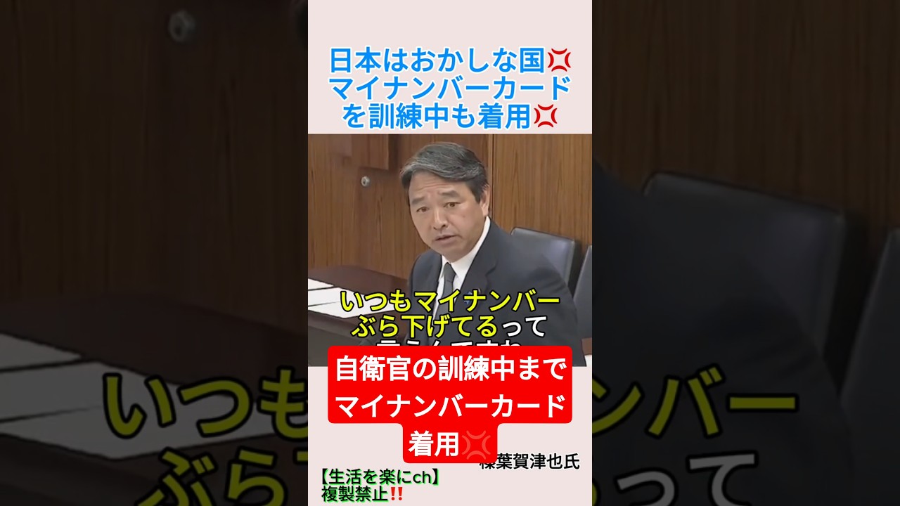 【日本はおかしな国💢】マイナンバーカードを訓練中も着用💢#shorts #榛葉賀津也 #河野太郎 #自衛官 #マイナンバー