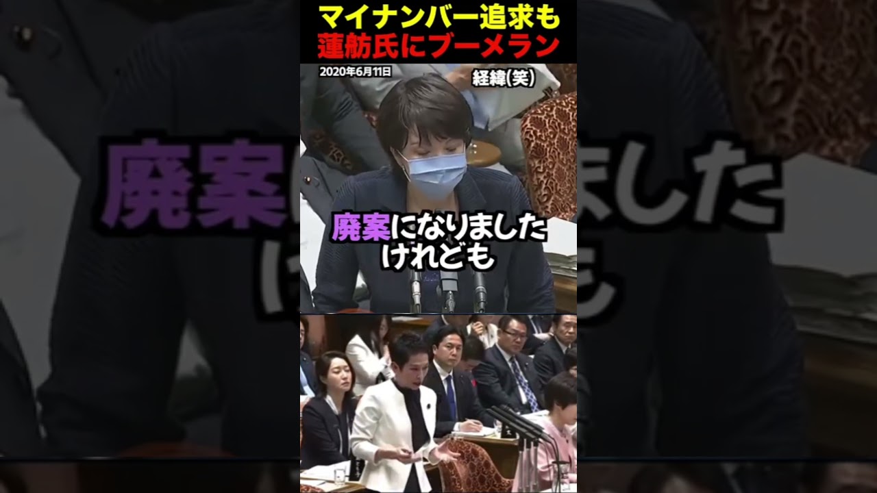 2020年6月11日、参議院の質疑で、蓮舫議員がマイナンバー制度の本来の目的を追及。「今回の給付ではマイナンバー自体を使っていない」と指摘すると、高市早苗総務大臣は「法律上の規定がなく、今回は本人確認機能のみ使用」と説明。さらに「マイナンバー法は民主党政権時に立派に作られた」と評価し、その目的について「確実な本人確認、行政の効率化、公正な社会保障制度の実現」と明言。蓮舫議員は「本来は国と地方をつなぎ、国民の利便性を高めるための制度」と反論し、運用の実態を問題視した。