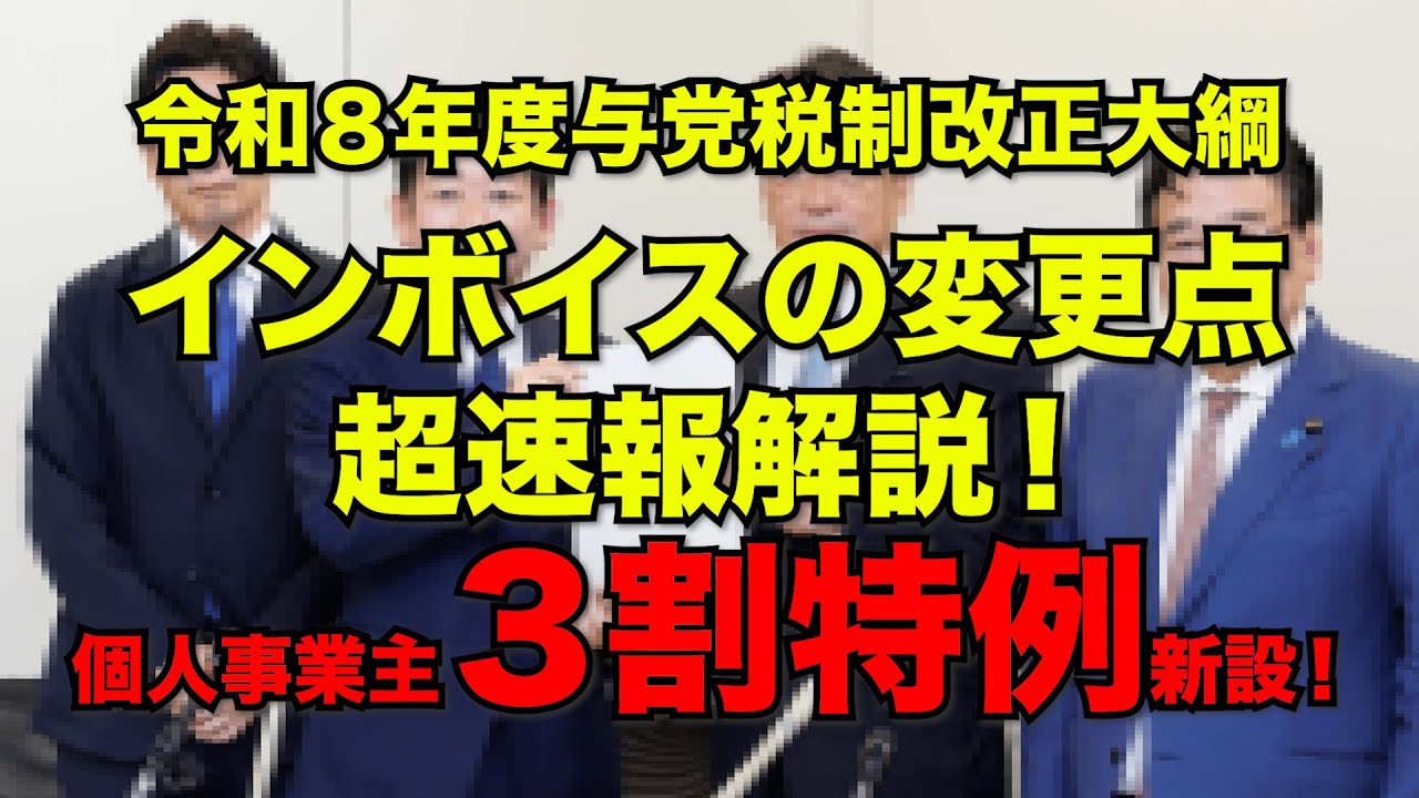 【令和8年度与党税制改正大綱・超速報】インボイス制度はこう変わる|個人に3割特例新設、法人は2割特例終了