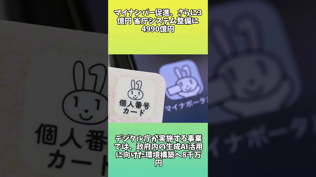 マイナンバー促進、さらに3億円 省庁システム整備に4990億円 マイナンバー制度 X Facebook はてブ Pocket LINE コピー 2025.12.27 日々の気になったニュースを短くまとめて動画にしています 政治、経済、芸能、スポーツなどを毎日あげていきます。 【音声】VOICEVOX: 青山龍星