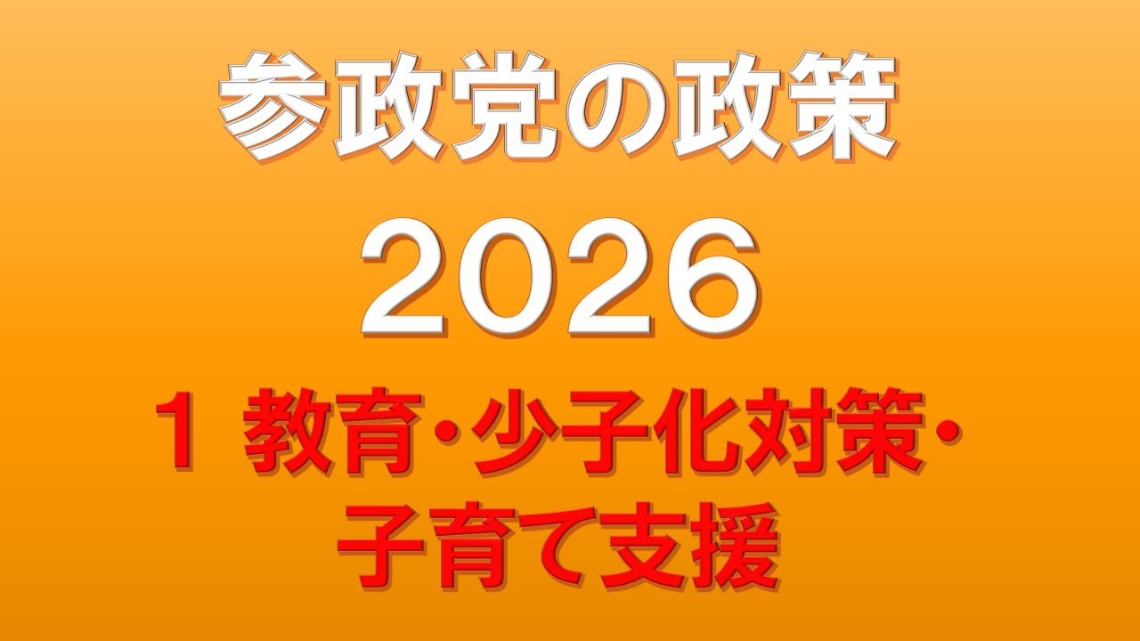 参政党の政策 2026 1教育・少子化対策・子育て支援