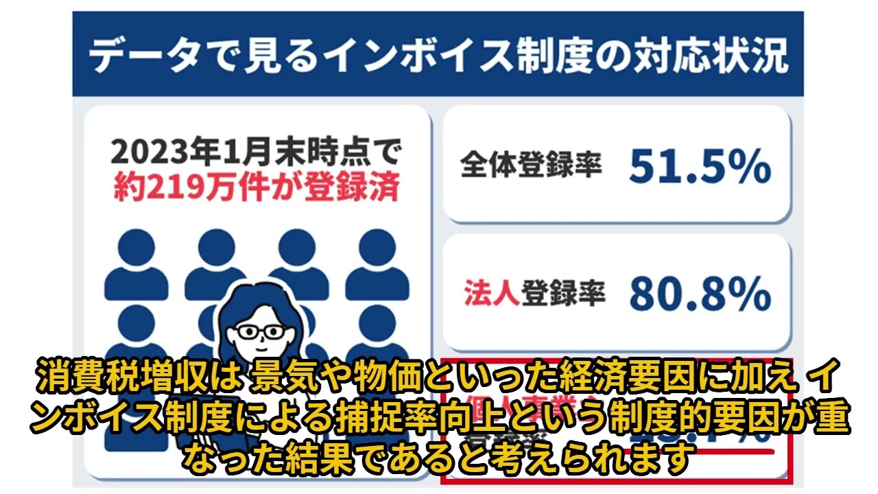 本稿では、令和7年度の消費税増収見込みについて、インボイス制度の普及・徹底との関係に注目しながら、特に、➀インボイス制度が消費税の捕捉率をどの程度高め、結果として税収増にどのように寄与しているのか、またその一方で、➁制度が抱える問題点についても批判的に考察することを目的とします。(所要視聴時間12分)