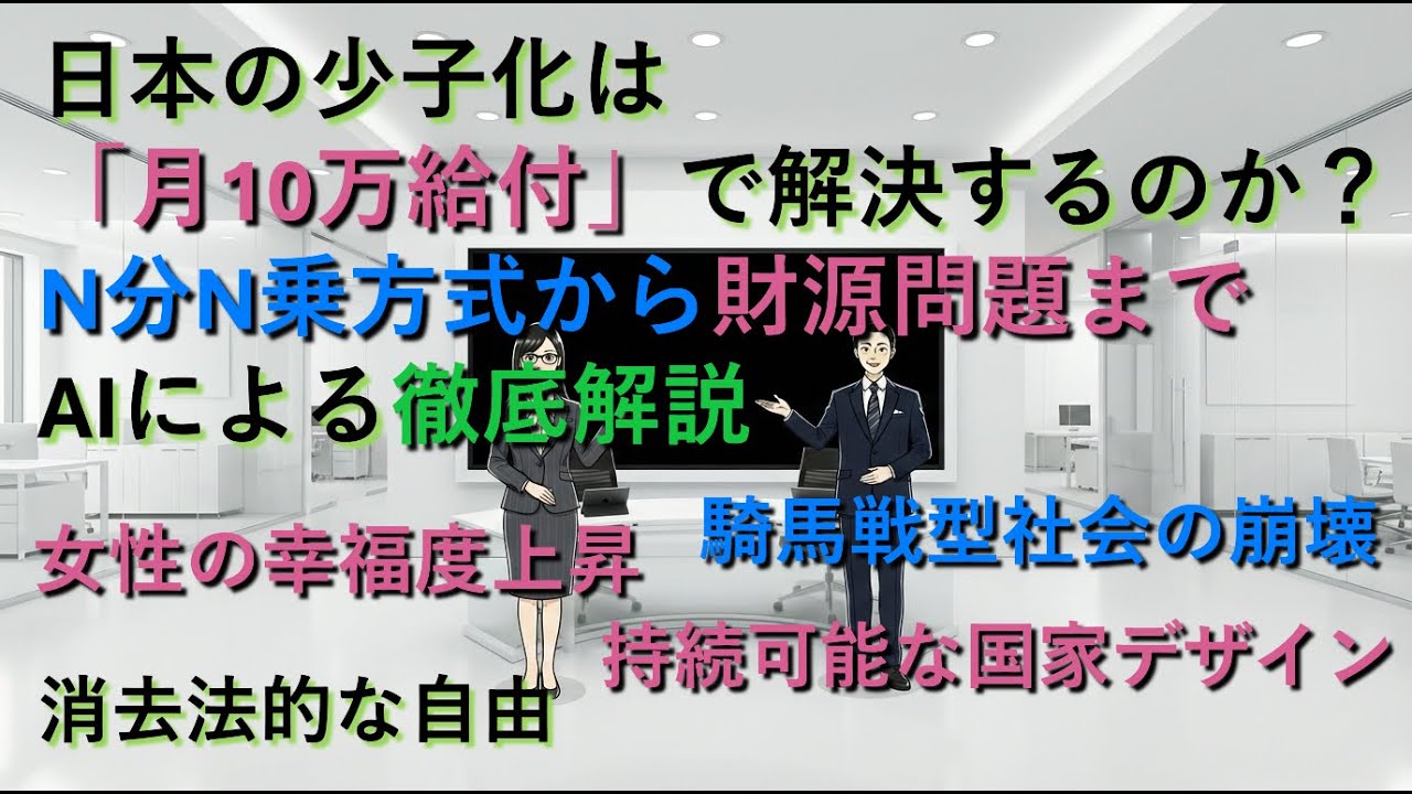 日本の少子化は「月10万給付」で解決するのか?N分N乗方式から財源問題まで、AIによる徹底解説