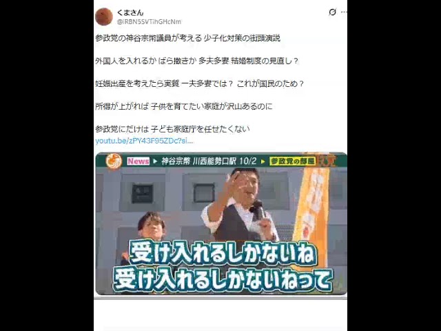 【狂気】参政党 神谷宗幣代表が考える少子化対策「多夫多妻」