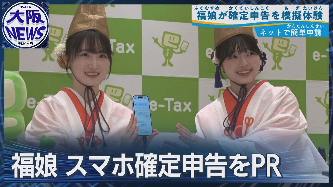 2月16日の確定申告開始を前に、今宮戎神社の福娘がスマートフォンでのe-Tax申告を体験。マイナンバーカードを連携し、医療費やふるさと納税などのデータが自動反映されるため、約10分で申告が完了です。福娘は「難しいと思っていたが、画面の案内に従うだけで簡単だった」とコメントしました。