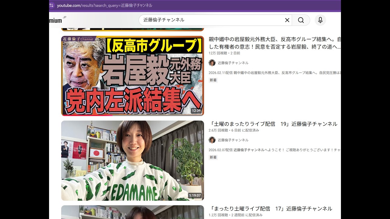 (サムネも)https://www.youtube.com/results?search_query=%E8%BF%91%E8%97%A4%E5%80%AB%E5%AD%90%E3%80%80%E5%B2%A9%E5%B1%8B%E6%AF%85