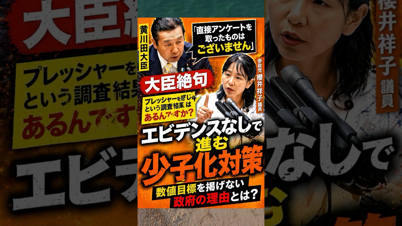 【大臣絶句】“エビデンスなし”で進む少子化対策?数値目標を掲げない政府の理由に国会で厳しい追及 #少子化問題 #国会 #参政党 #櫻井祥子 #政治 #エビデンス #ニュース #切り抜き #shorts 少子化対策 X Facebook はてブ Pocket LINE コピー 2026.04.06