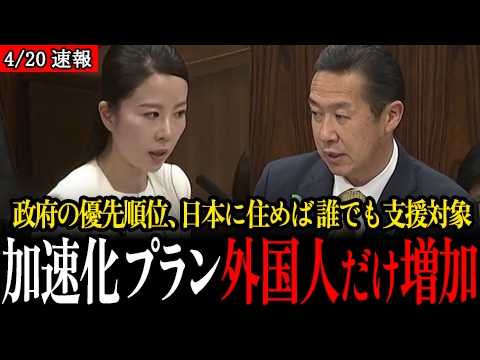 10:00 黄川田 内閣府特命担当大臣答弁:大部分の外国人の皆様は税や社会保険料を納めており、在留する外国人は母国の税金等による子育て支援教育を受け、所要の技能を身につけた上で我が国で経済活動を行い地域産業を支えている。富国の逆に流入という側面もある。