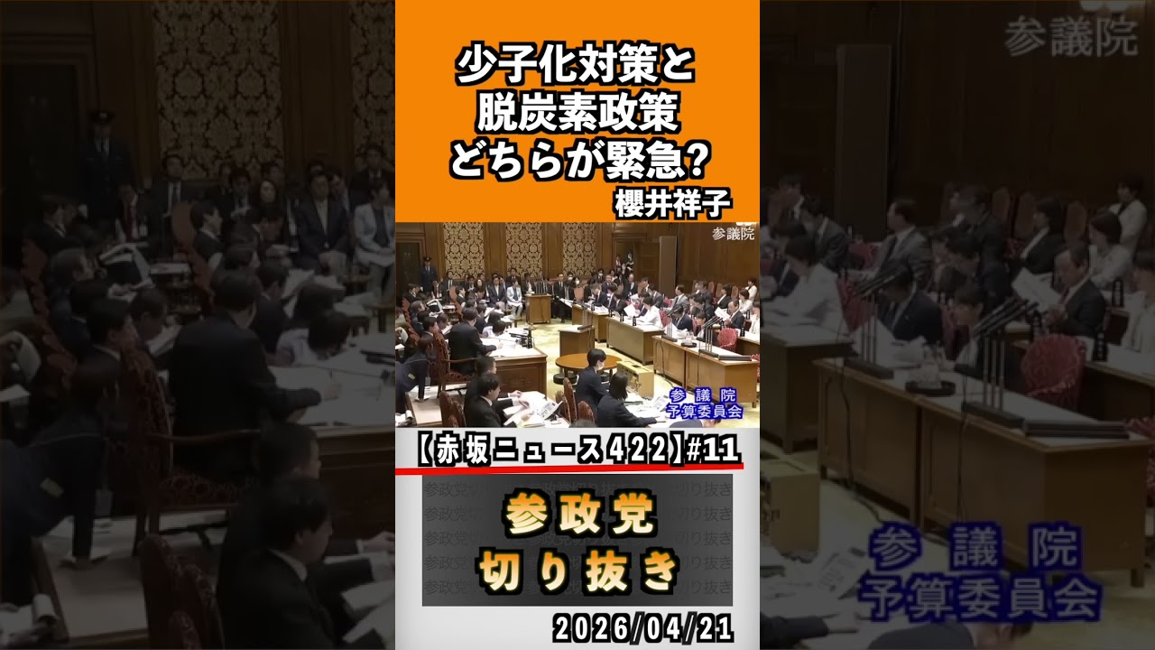 11 少子化対策と脱炭素政策どちらが緊急?#神谷宗幣 #参政党 #参政党は止まらない #ひとりひとりが日本#櫻井祥子 少子化対策 X Facebook はてブ Pocket LINE コピー 2026.04.28