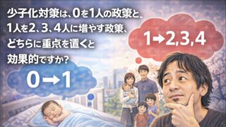 少子化対策 【ひろゆき】少子化対策は、0を1人の政策と、1人を2、3、4人に増やす政策、どちらに重点を置くと効果的ですか?ー ひろゆき切り抜き 20251209